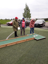 Minigolfia pelaamassa Haluna-tuvan maastossa 5.6.2025